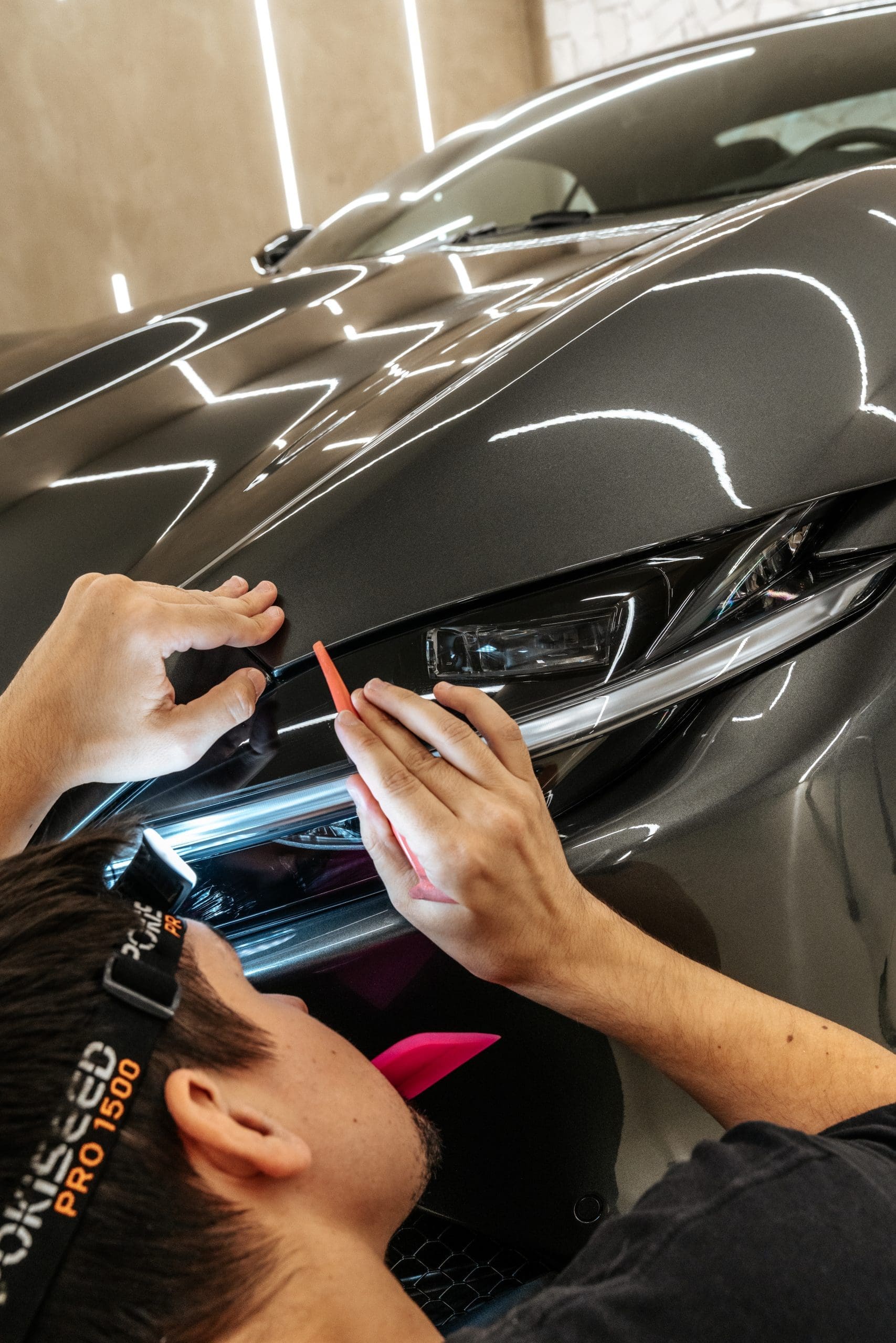 El Paint Protection Film, conocido como PPF, es una película transparente de poliuretano de alta resistencia diseñada para proteger la pintura del vehículo contra daños cotidianos como arañazos, impactos de gravilla, insectos, resina de árboles, excrementos de aves, rayos UV y agentes químicos. Su aplicación ayuda a preservar el acabado original del coche durante mucho más tiempo.